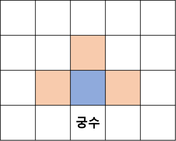 - 그림처럼 궁수 바로 위(파란 칸)에 적이 있다면 bfs 필요 X